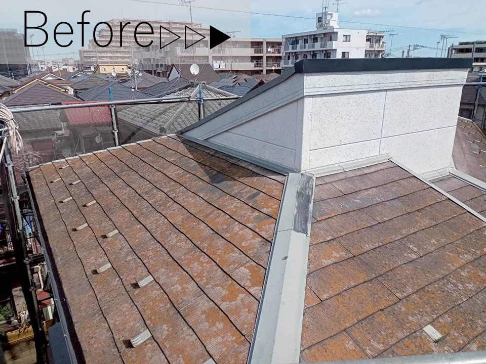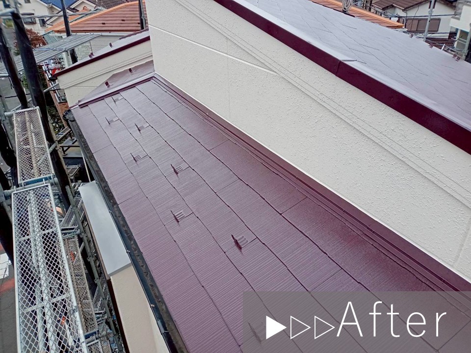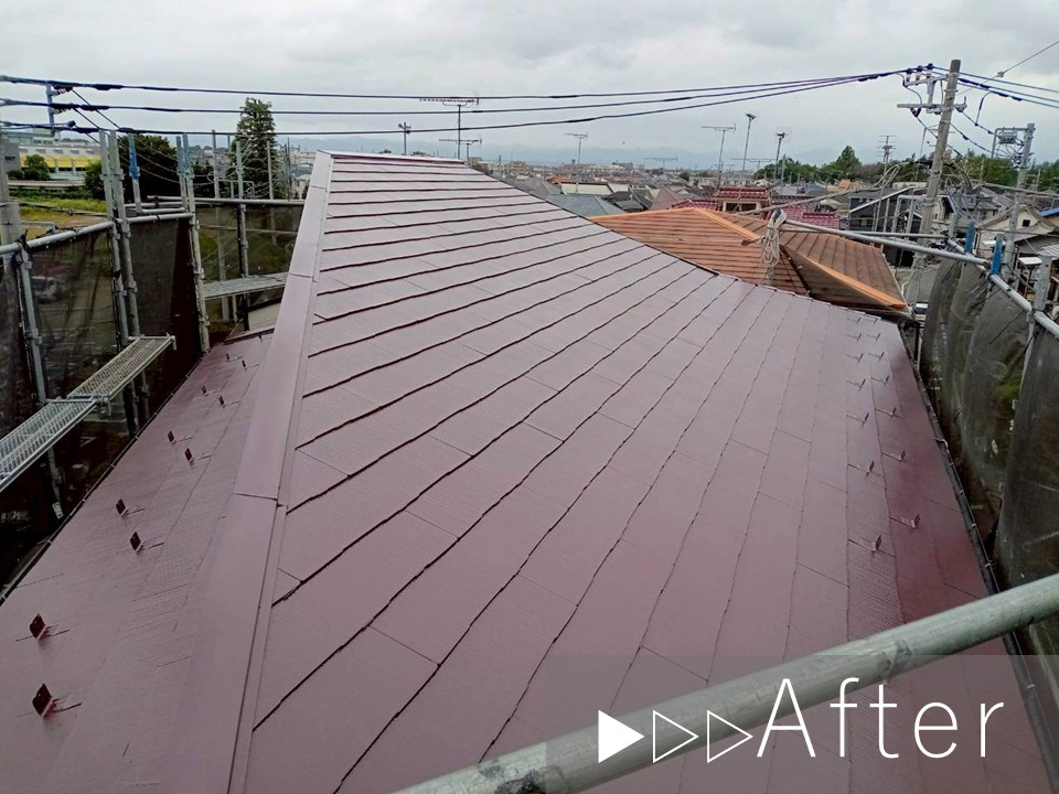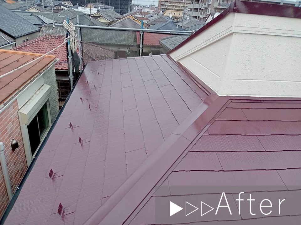 しかしまだスレート材の劣化は軽度であったため、塗装工事による塗膜と美観の回復をご提案いたしました。 |